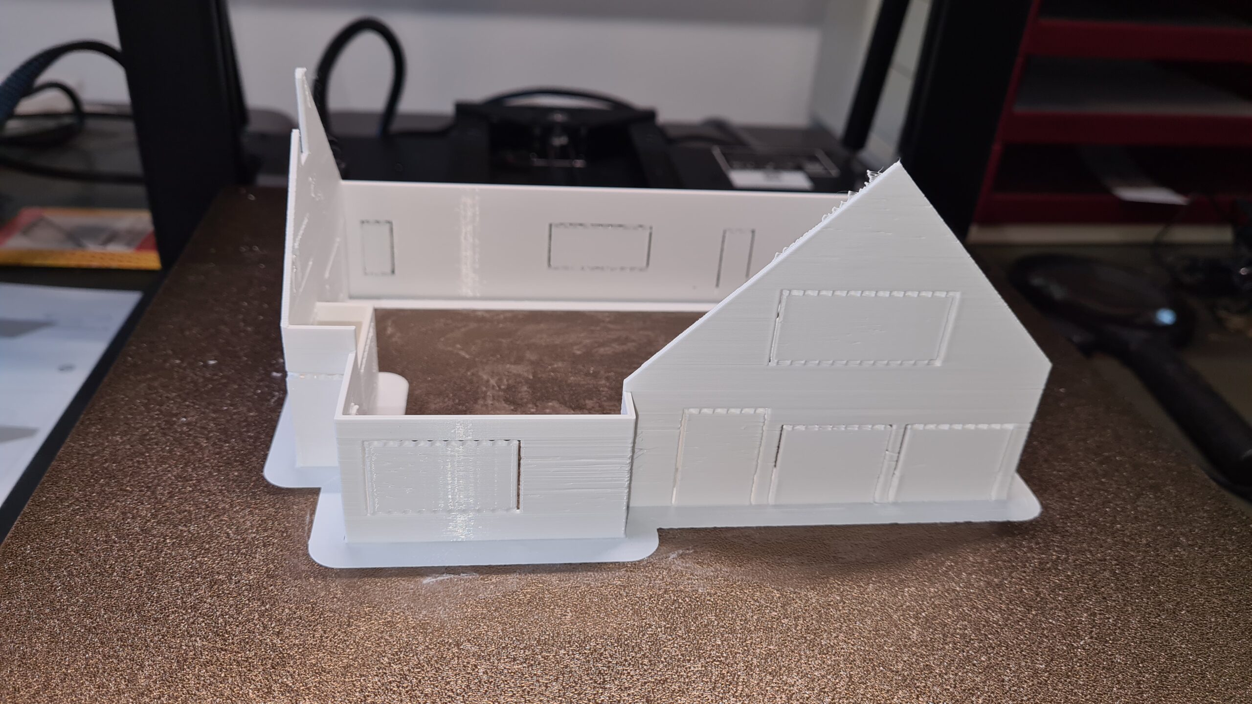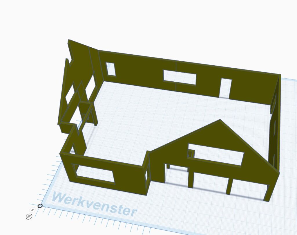 Alle kozijnen komen ook uit de 3d-printer. Het bleek dat er ca. 20 verschillende kozijnen waren, dus die moesten stuk voor stuk apart ontworpen worden.